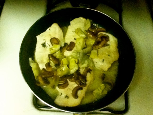 After a food-filled birthday, which may or may not have included two desserts, I was excited today to be back in the kitchen and cook healthily. I made chicken breasts with mushrooms and artichoke hearts and made a lemon white wine sauce for the chicken. I hope you enjoy my recipe as much as my parents and I did.