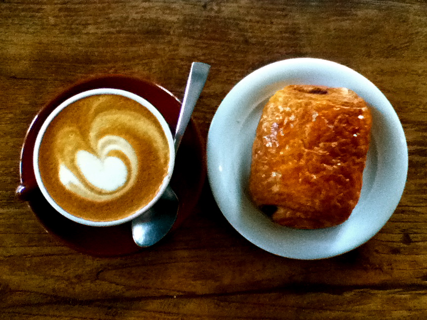 Plus, I can eat too! (My multi-tasking skills are beyond belief). This morning, as I was working on my linear algebra problem set, I enjoyed a delicious cappuccino and a pain au chocolat (i.e. a chocolate croissant). Could life possibly get any better?