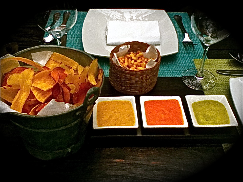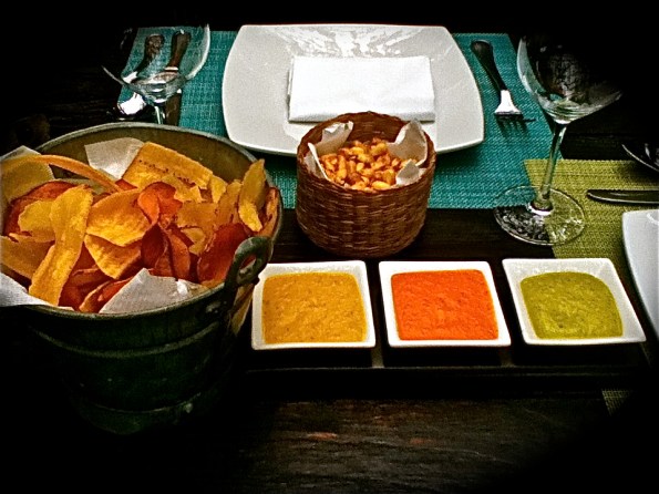 But the chips got me thinking about the delicious veggie chips (sweet potato, plantain, zucchini, and eggplant) I had in Peru. Perfectly crisp and served with three different types of dipping sauce. The only downside was that by the time the food I ordered came out, I was already full.