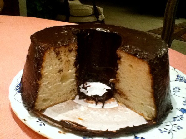 The good news: it’s just an angel food cake, with chocolate frosting. Alton Brown’s recipe looks really promising for the cake: http://www.foodnetwork.com/recipes/alton-brown/angel-food-cake-recipe/index.html