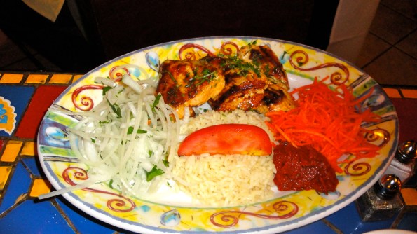 I have had Turkish food twice since I’ve been home. Kind of random I know, but I love it. Yesterday for dinner, my parents and I shared some really delicious mezes with warm bread, similar to pita but even better. (Mezes below: spinach with yogurt on top, cacik which is just yogurt with cucumber, baba ganoush, and beans in tomato sauce). Happy but filled with the appetizers, we split an entree: chicken breast with rice pilaf. Everything I ate yesterday evening was delightful.