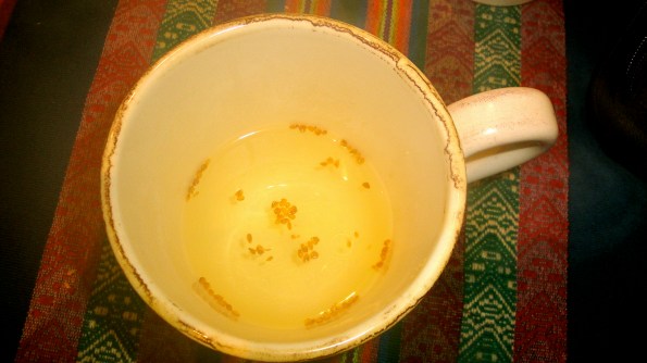 It’s been a while since my last blog post, but now I am on summer break and I plan on eating lots of good food and sharing my experiences with you. For my first meal home, I had cold cucumber soup with fresh dill and arctic char with roasted veggies. Though everything was absolutely delicious, the highlight of my meal was the buckwheat tea my roommate brought me from Korea. I don’t want to say it tasted like wheat because drinking carbs doesn’t sound appealing whatsoever. What I can say is the tea was mildly sweat and so tasty that I even ate the buckwheat grains in my hot water. It was like having cereal and tea at the same time. Mind-blowing, right? I drank my tea with a cider doughnut from Atkins. What a perfect way to start my summer!