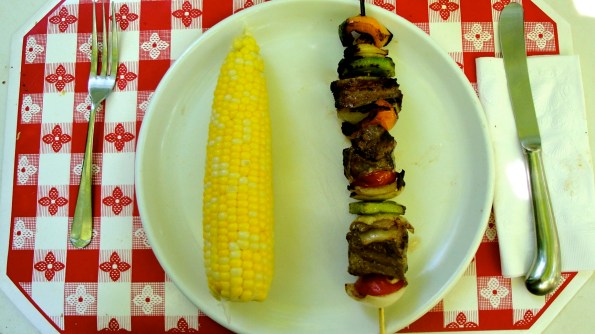 The other day for lunch, my brother grilled some steak brochettes which my grandmother had prepared. The skewers had steak, tomatoes, onions, garlic and different colored bell peppers. Served alongside corn, this lunch was perfect for yesterday’s beautiful weather. I’m only wishing the sun would come out today.