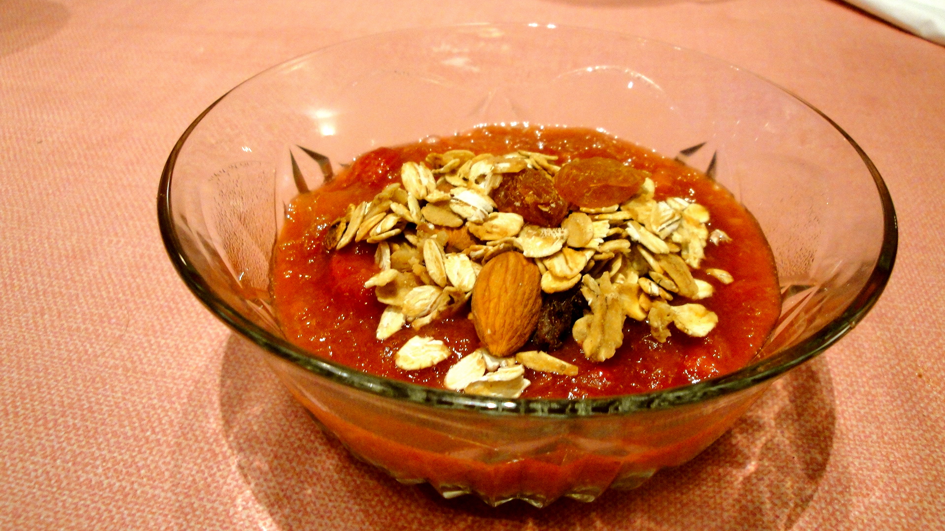 For texture, I added some homemade honey-nut granola, but this is totally optional. The compote is good on its own. Warning: the rhubarb is a little tart, so add more sugar if you want the compote sweeter.