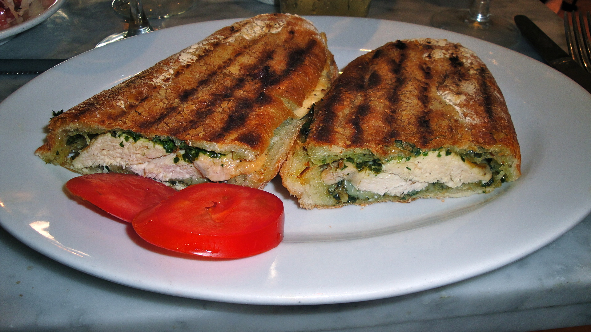 Panini with grilled chicken breast and pesto (from Cucina Vivolo).