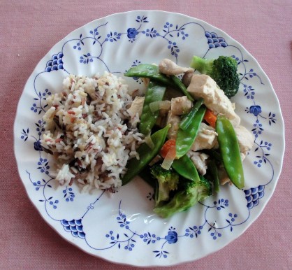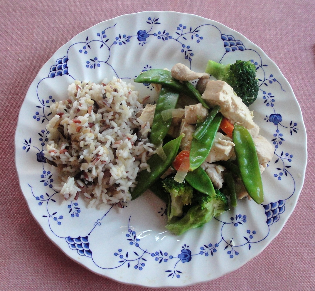 I ate my chicken stir-fry with wild rice. I enjoyed making and eating healthy Chinese food at home, and you can too!
