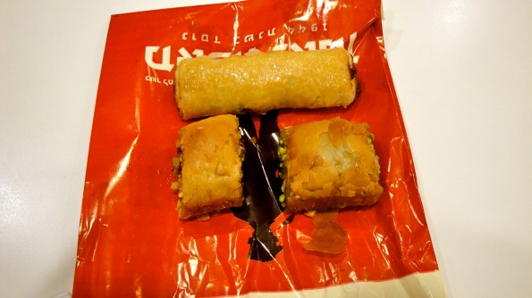 The right row is all baklava! (I got pistachio and walnut baklava).