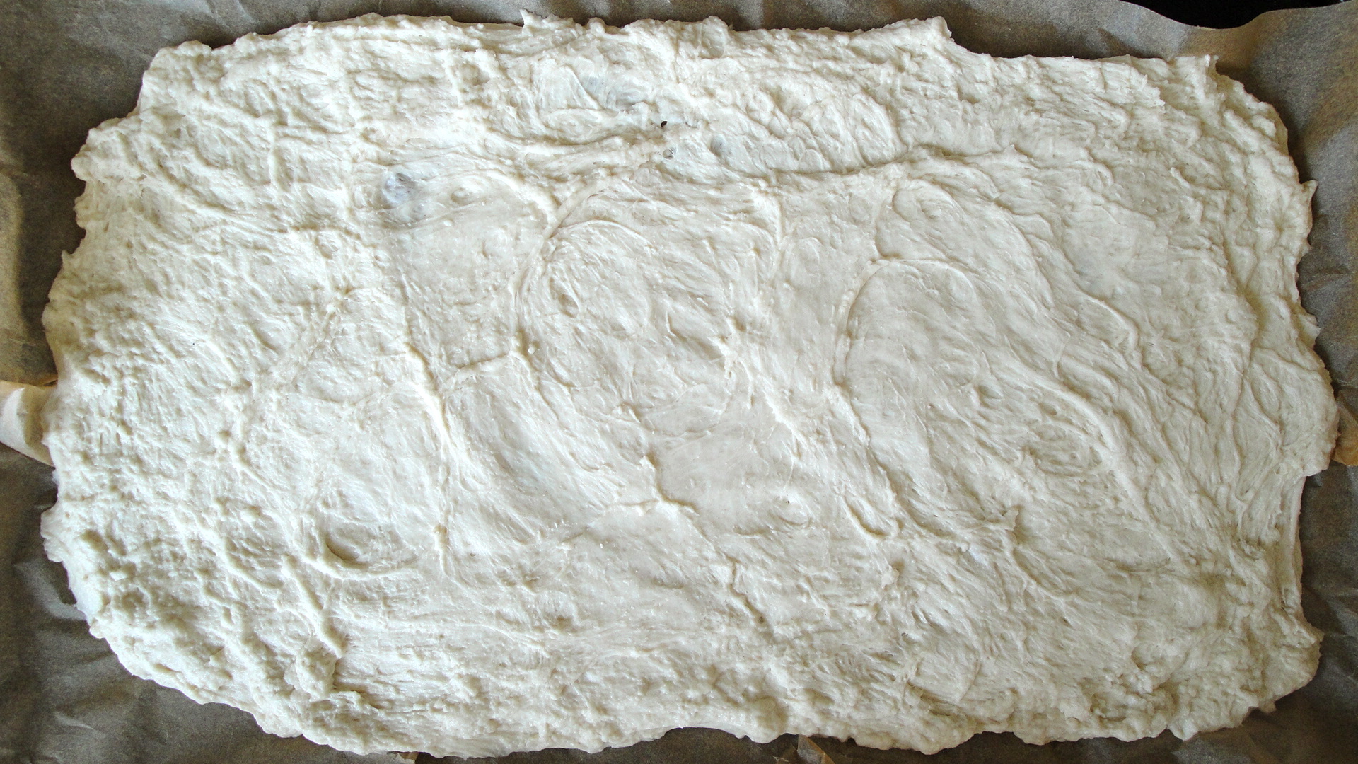 Pizza dough flattened out
