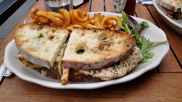 I ordered a sandwich with chicken, brie, pear, and pesto. It came with fries, and it was rather tasty though I have to say that it was a bit too oily because of the oil from the pesto and the oil from the melted brie.