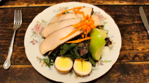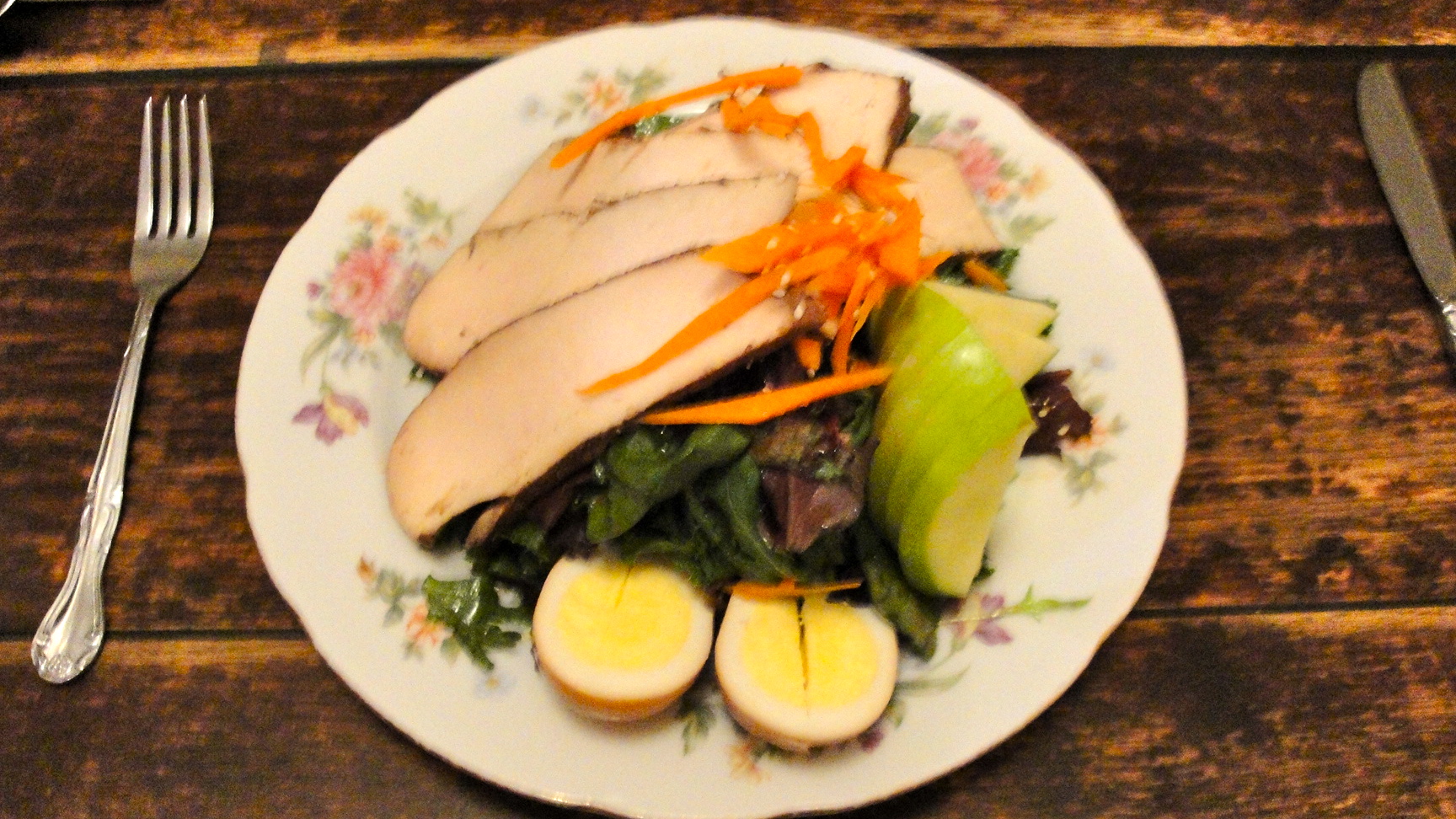 After lunch, my friend and I walked all the way uptown. We must have walked between 8-10 miles! In the evening, my friend and I met another friend at Alice’s Tea Cup, where we enjoyed that delicious cake in the first picture. I also ate a salad with chicken (I just realized I ate chicken twice today), apples (similar to the pears in my lunch sandwich!), carrots, eggs, and a very good ginger dressing.