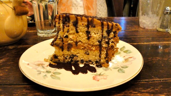 I put the picture of the chocolate chip mocha cake from Alice’s Tea Cup first even though that was the last event of my day. This cake was so good! The mocha frosting was delicious but not overwhelming, and I enjoyed the chocolate chips interspersed in the cake. (I even shared this with a couple of friends, so you are witnessing portion control right there!)