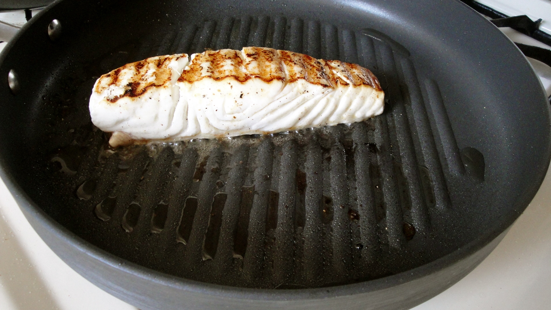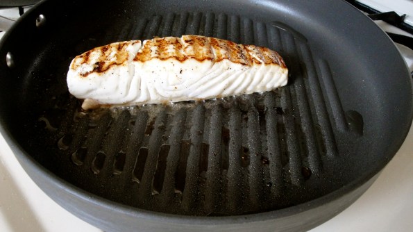 1) Squeeze 1/2 lime over seasoned fish. Heat canola oil on a grill pan under medium heat. (Make sure to wait till the pan is hot, so that the fish gets a nice sear).