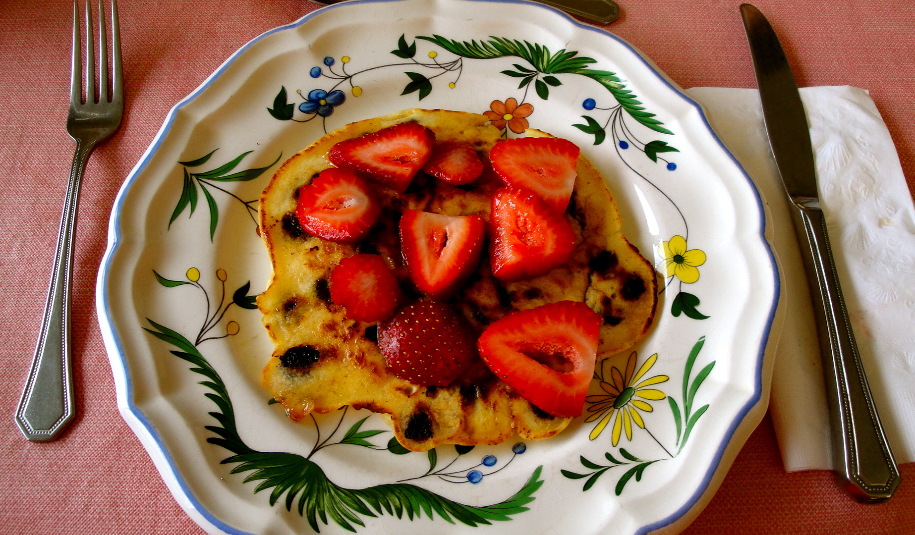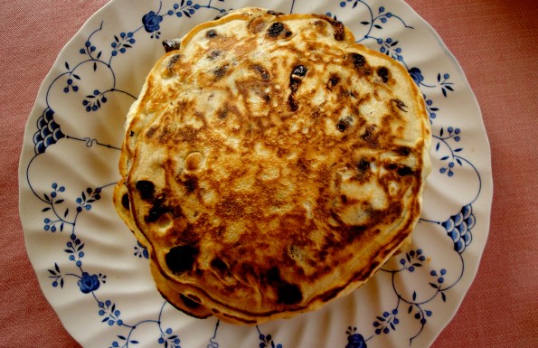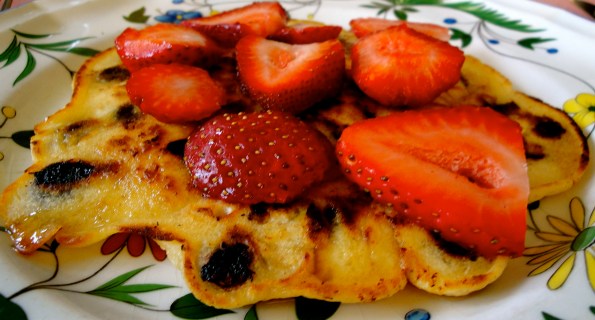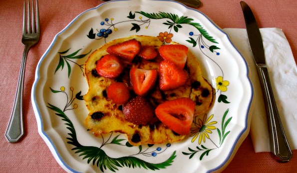 Chocolate Chip Pancakes with Strawberries