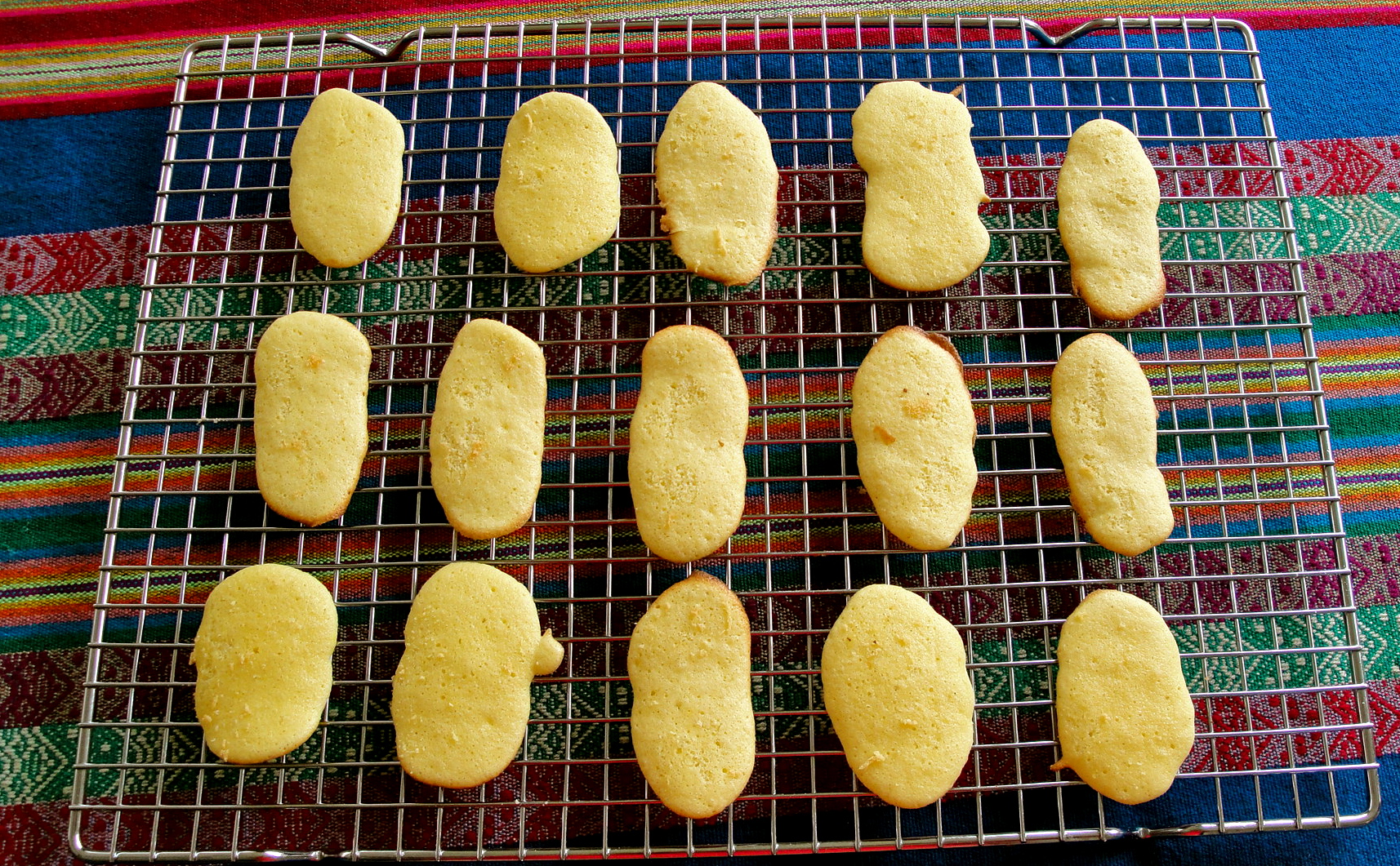 I love lady fingers even though I think their name is deceiving – they don’t exactly look like a lady’s fingers. I got the recipe for these cookies from food.com, and they came out great. Mine were a little bit thin, but the texture was perfect – light and fluffy. I didn’t have a piping bag, so I just used a large ziplock bag instead. I cut the tip of the bag, and used it to pipe out the lady fingers.