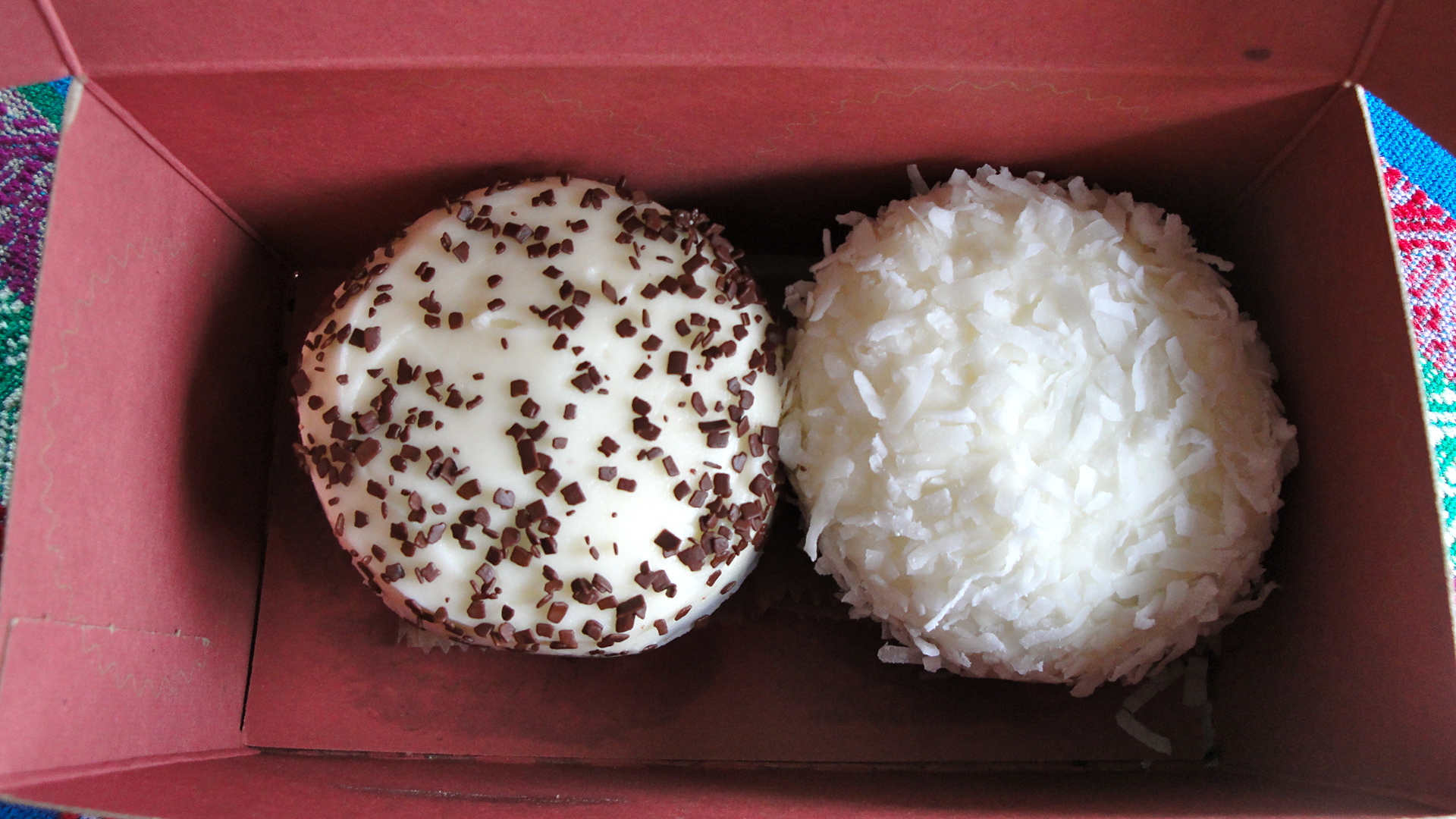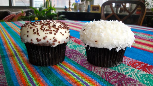 The cupcake on the right is a chocolate coconut cupcake with a chocolate cake and coconut cream cheese frosting. The frosting and cake were top-knotch, but I will confess, I don’t really like coconut. However, for some reason, the coconut just worked on this cupcake.