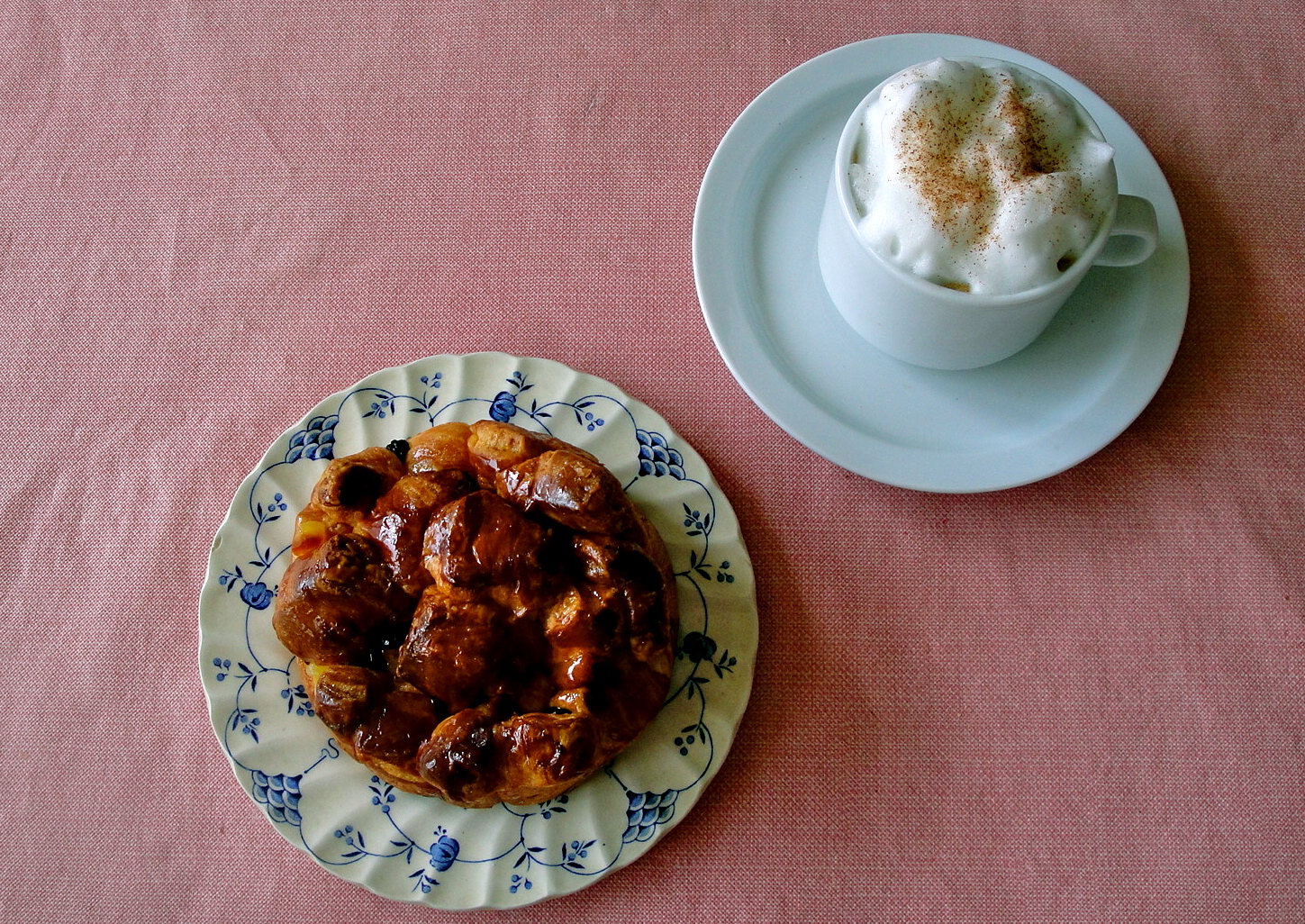 I went with my friend to Koreatown the other evening, and she recommended I try this Korean treat which reminds me of a sweet bread both in appearance, texture, and taste. I would call it a Korean version of challah with delicious sweet chestnuts and raisins inside. Cappuccino was the perfect accompaniment to this Korean “challah” (also my friend’s suggestion).