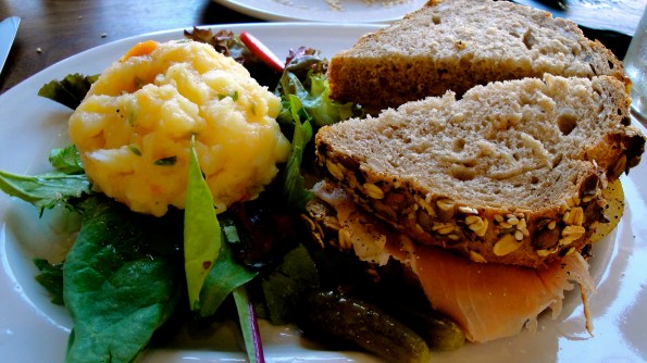 I was very happy with my choice. Landbrot had a very nice, well-lit, welcoming atmosphere. Best of all, the food was delicious! I started with a sesame seed pretzel which was so much better than the pretzels sold on the street. The pretzel was warmed and served with butter on the side. Let’s just say I was already smiling.