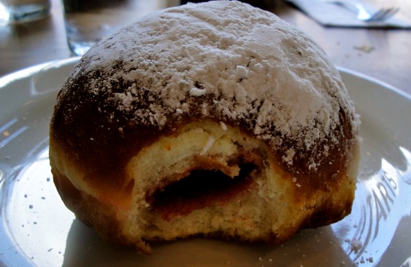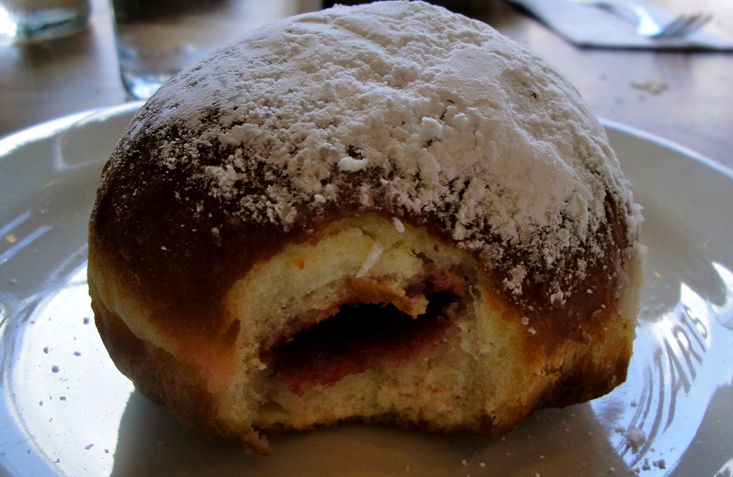 I was plenty satisfied, but my mom convinced me to order a Berliner which is a German jelly doughnut. Ok, I guess “convince” is a strong word. How can I say “no” to dessert? The doughnut was very delicious and the strawberry jelly inside was delightful. My one complaint is I wish there was more of it – I hate biting into a jelly doughnut and getting no jelly whatsoever.
