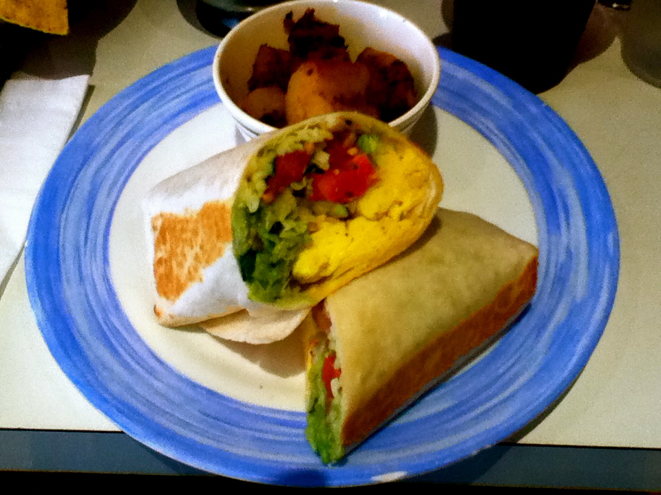 I am home for the long weekend, so I have been stuffing my face with food before I head back to school. On Saturday, I saw my best friend and we went to my favorite Mexican restaurant in NYC – Blockheads. We both ordered a breakfast burrito which came with ham (at first, my friend’s did too even though she precisely said no ham), scrambled eggs, tomatoes, lettuce, avocado, and a side of potatoes (possibly home fries?)