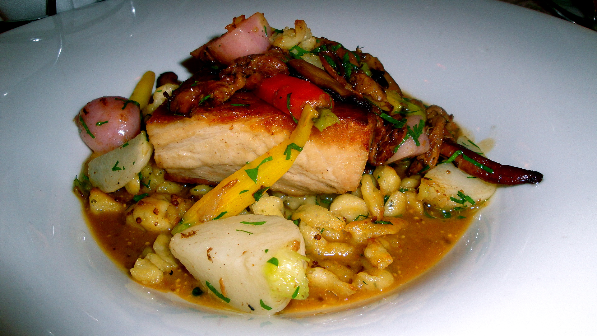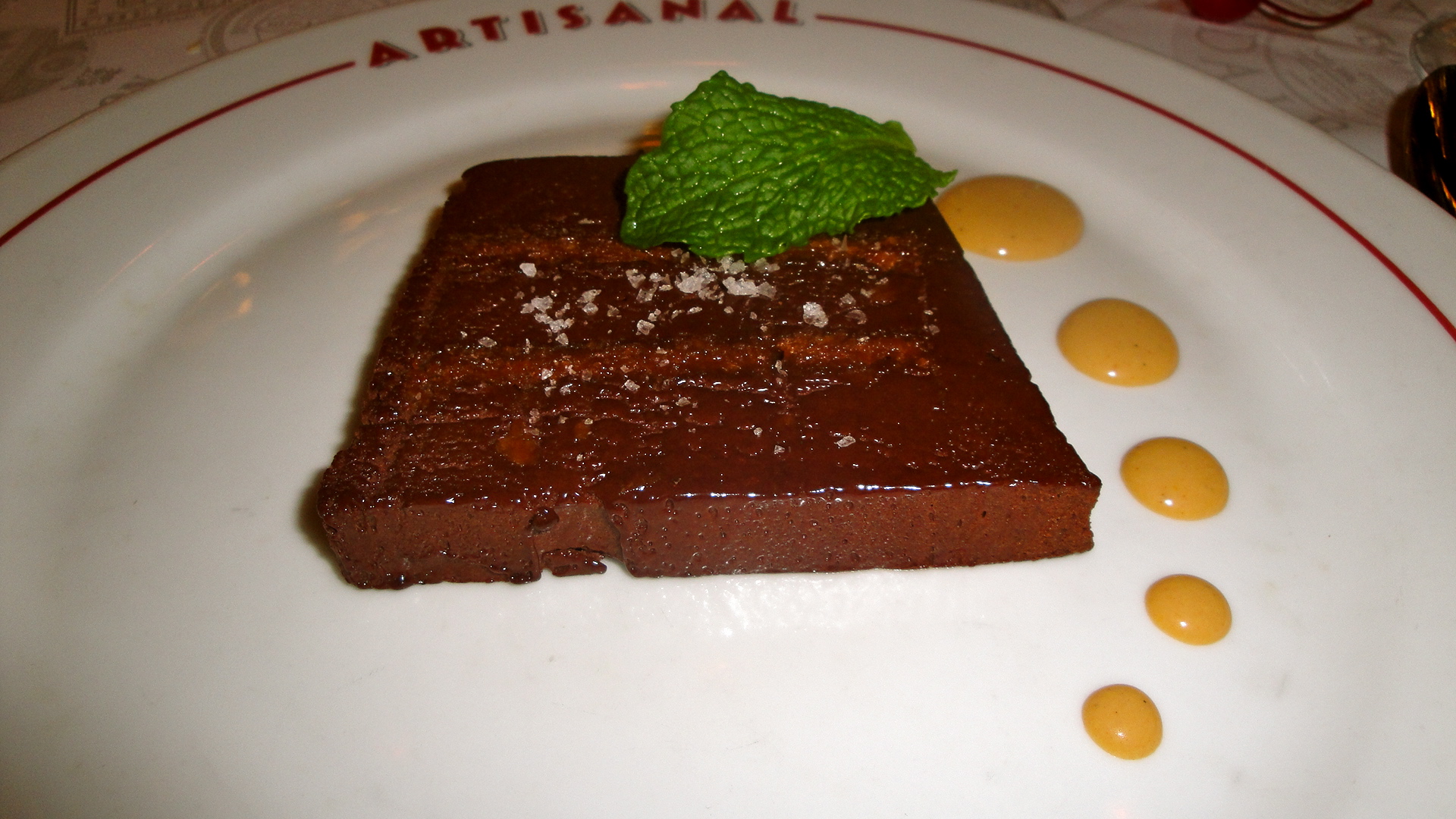 For my main course, I ordered pork belly which came with mustard spaetzle and some vegetables. The pork belly was also quite sinful, as there was a rim of awesome fat surrounding the tender pork. To finish my scrumptious meal, I had a chocolate terrine which had a hazelnut praline in the center. It was a wonderful end to a very memorable celebration.