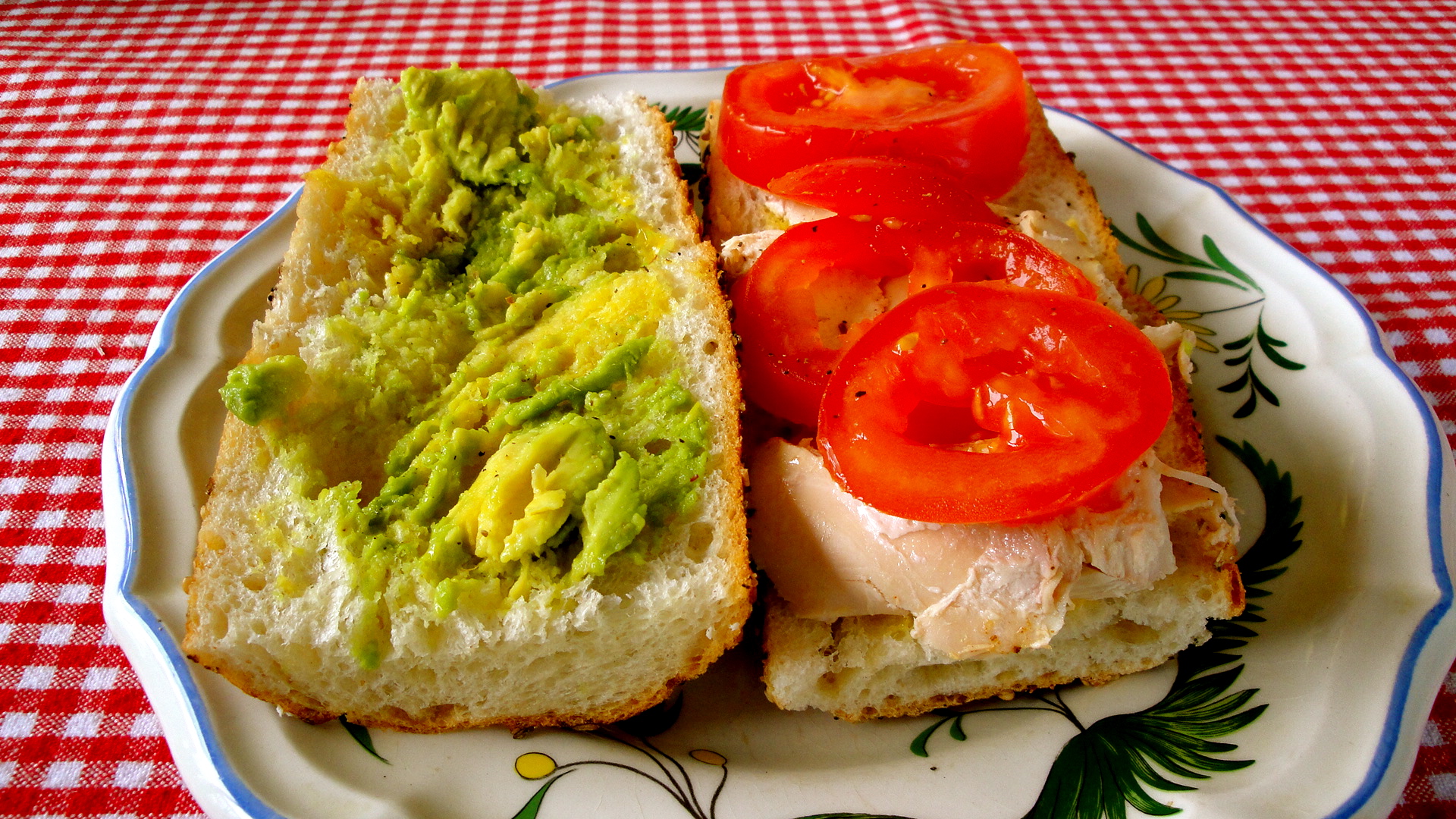 I’ve noticed that I really like when a dish has both savory and sweet components. I think that these two different components add balance and complexity to a dish. For lunch today, I prepared an arugula salad with watermelon, red grapes, walnuts, chopped fennel, a splash of lemon juice, a tablespoon of pomegranate vinegar (cider vinegar would be great here too), and a tablespoon of olive oil. To go with my salad (I rarely eat only salad for a meal), I made a chicken sandwich with honey mustard, sliced tomato, and mashed avocado.