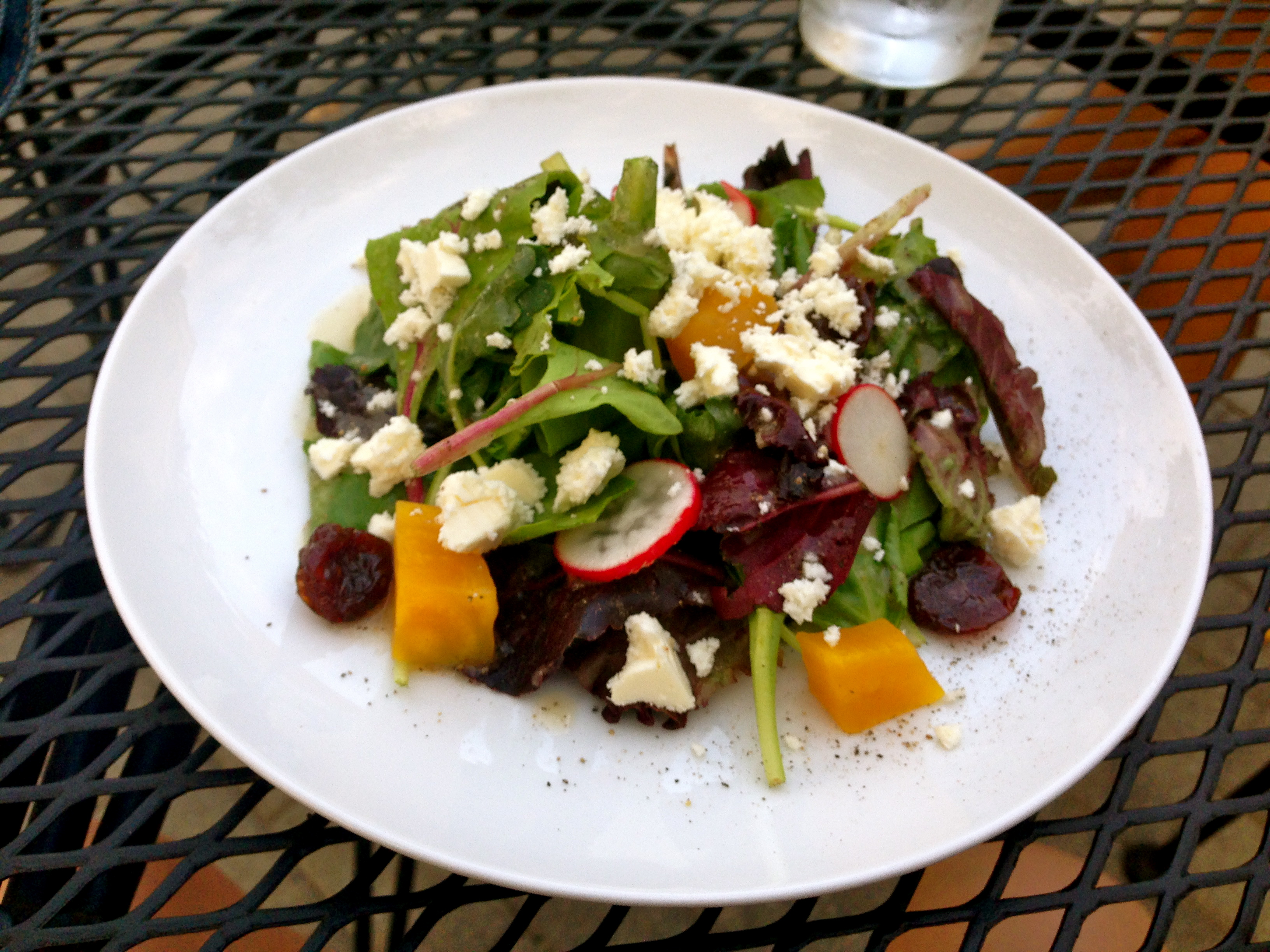 Beet salad with feta and dates (Old Vines Wine Bar and Tapas, Kennebunkport). The beets were yellow but tasted like the red wines I am used to. I really enjoyed this salad.
